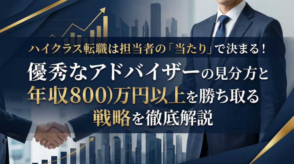 ハイクラス転職は担当者の「当たり」で決まる!優秀なアドバイザーの見分け方と年収800万円以上を勝ち取る戦略を徹底解説 ハイクラス転職を成功させるカギは、エージェントの担当者が「当たり」かどうかにあります。年収800万円以上のポジションを狙うなら... -