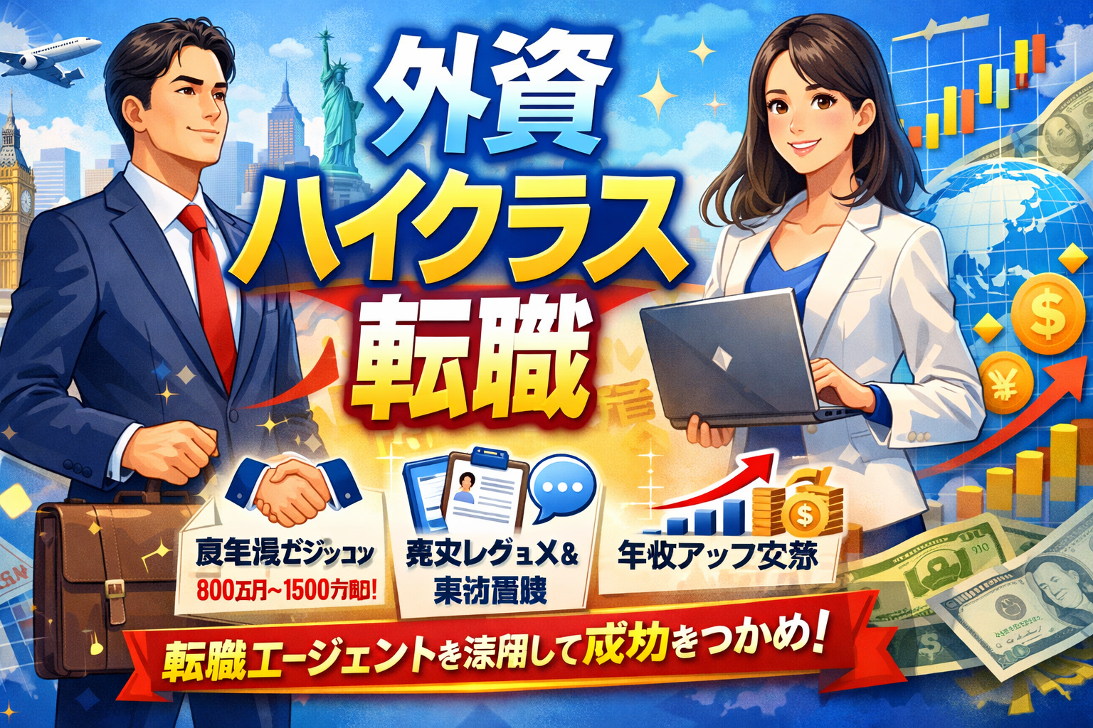 外資系企業でのハイクラス転職を目指すなら、年収800万円〜1,500万円以上のポジションに強い転職エージェントの活用が成功のカギです。本記事では、外資系ハイクラス転職に強いおすすめエージェントの比較から、英語面接対策・英文レジュメの書き方・年収交渉術まで、転職成功に必要な全知識を徹底解説します。