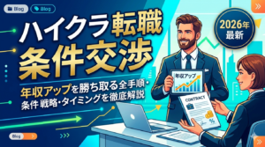 年収交渉についても、エージェントが転職先との間に入って代行してくれるため、自分では言いにくい希望条件も適切に伝えることができます。ハイクラス転職の成功事例をもっと知りたい方は、ハイクラス転職の成功例15選|年代別・業界別にリアルな年収アップ事例と成功のコツを徹底解説【2026年最新】もぜひ参考にしてください。
